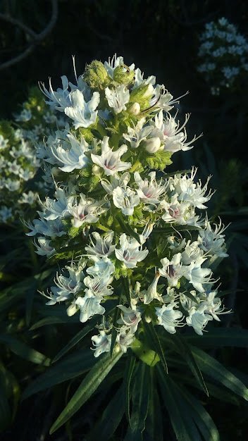 Así que las plantas tienen primavera también en invierno y florecen cuando las condiciones se lo permiten, como es el caso de los tajinastes blancos, que, en muchos casos, están floreciendo, como este que me encontré junto con otros en el barranco de Tamaraceite.