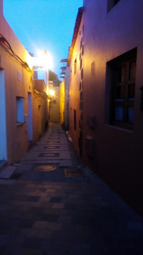 On this occasion I took the photograph almost at nightfall, at around 6.30 p.m. in the village of Agüimes in Gran Canaria. At that time the light began to escape, artificial lighting began and the combination of these lights gave this result.