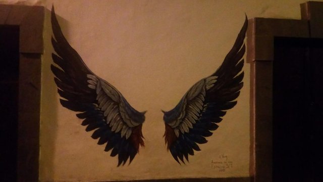 I found these wings when I was coming out of a literary-musical event: Rocks & Books that was held in my city, Las Palmas de Gran Canaria, and in which I had the immense honor of participating. When I saw them, I was impressed and decided to photograph them. It is true that light did not help much, because the lighting in this area is yellow light, not white, but still I decided to take a picture and the result is what they have seen.